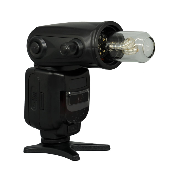 Универсальная накамерная вспышка с открытой лампой. Отличное качество, совместимость с DSLR-камерами систем Canon / Nikon, поддержка TTL-замера, высокая мощность. Полная перезарядка 2,9 секунд на полной мощности. При выходной мощности импульса 1/16 и менее поддержка режима высокоскоростной съемки до 12 к/сек., что прекрасно подходит для репортажной и спортивной съемки.
